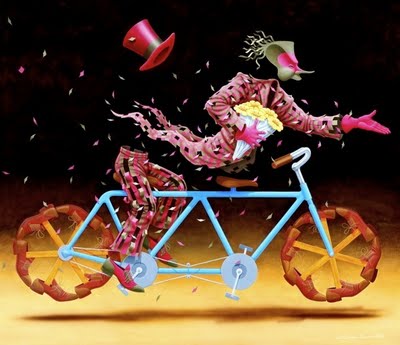 Os quadros de Cláudio Souza Pinto são assim. Não há nada além de roupas, chapéus, sapatos, máscaras. Não há nada dentro das roupas, chapéus, sapatos, máscaras. Ele pinta muitíssimo bem os gestos, os movimentos, os trejeitos, os volumes corporais e as posturas ... de ninguém. Nos quadros dele os seres humanos são ilustres desconhecidos. Só se sabe das suas aparências. Dos seus movimentos visíveis.